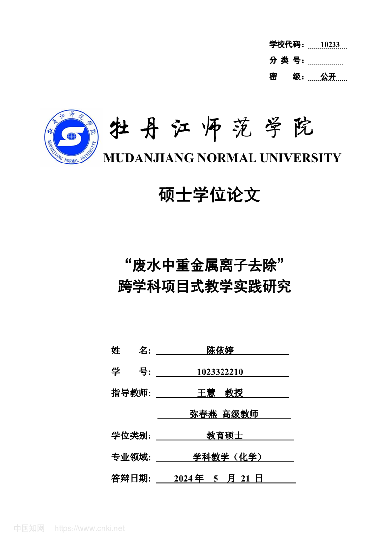 “废水中重金属离子去除”跨学科项目式教学实践研究-陈依婷