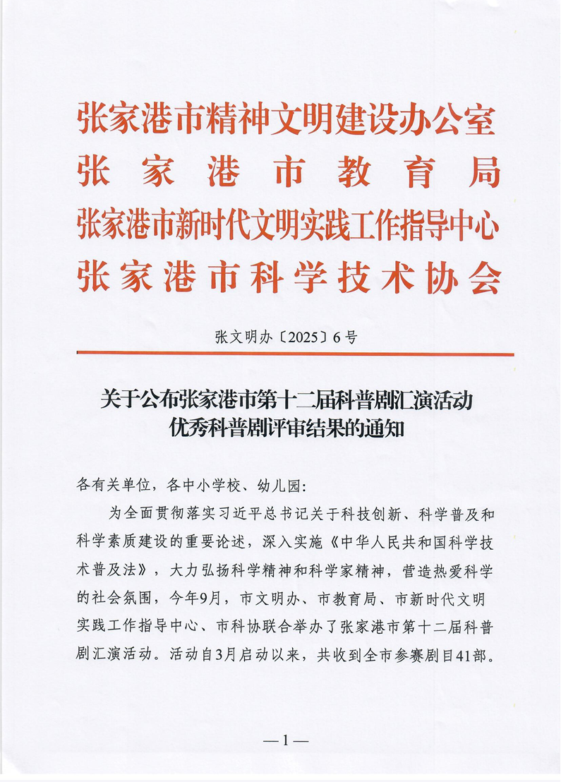 喜报:我校科普剧《游元宵庙会 承非遗文化》 荣获张家港市第十二届科普剧汇演活动“创作表演优秀奖” 来源: 发布时间:2025-10-31 20:16:34 浏览次数: 次 【字体:小 大】 分享到: 【打印正文】